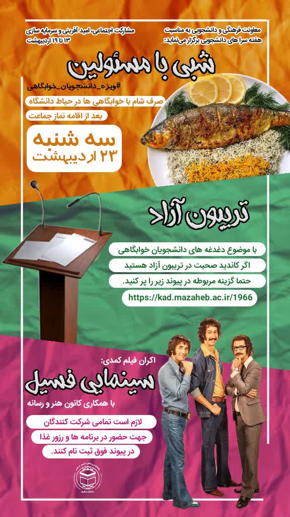 شعار هفته سرا های دانشجویی: مشارکت اجتماعی،امید آفرینی و سرمایه سازی ۱۳تا ۱۹ اردیبهشت