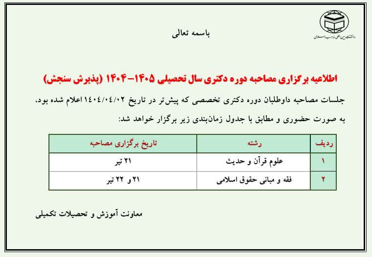اطلاعیه برگزاری مصاحبه دوره دکتری پذیرش سنجش در رشتههای علوم قرآن و فقه و حقوق ۰۷ تیر ۱۴۰۴ | ۰۰:۲۱ کد : ۵۵۲ اطلاعیه ها تازه ترین اخبار تهران و شعب ارسال به دیگران نام شما ایمیل شما ایمیل دریافتکننده ارسال انصراف تعداد بازدید:۸۱۹