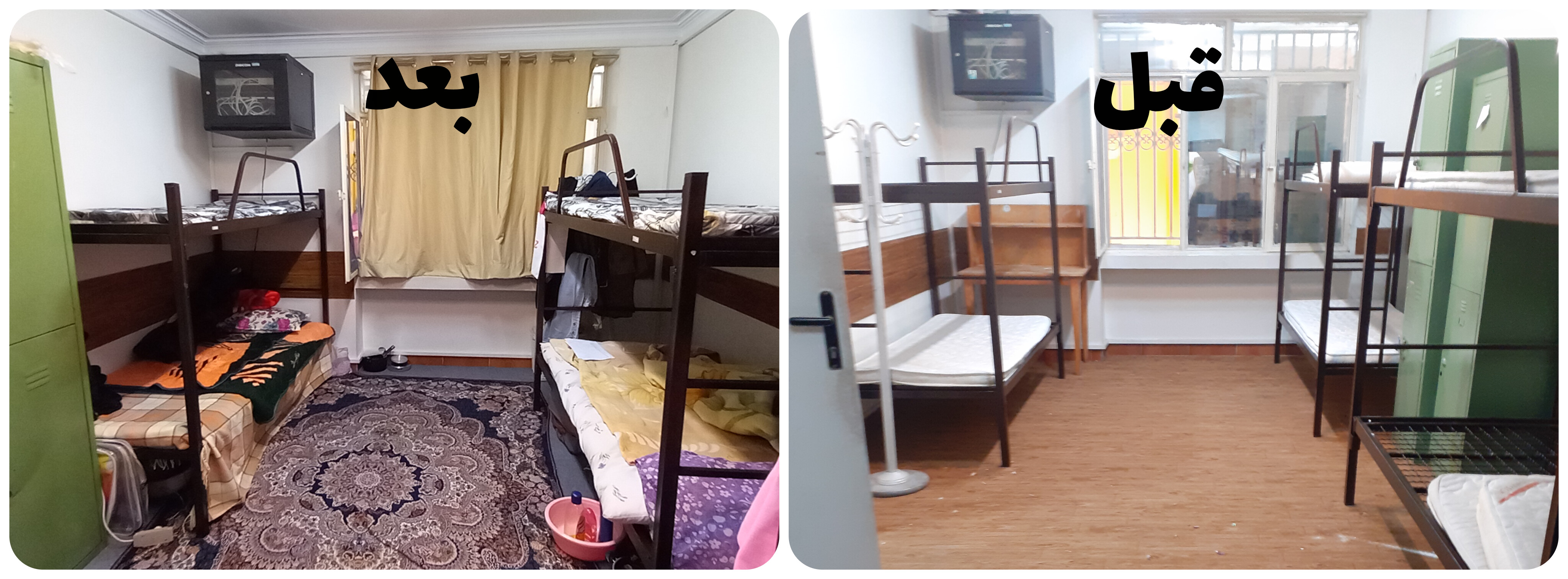 در پایان، تصاویری از وضعیت خوابگاه‌ها قبل و بعد از بهسازی را می‌توانید مشاهده کنید.