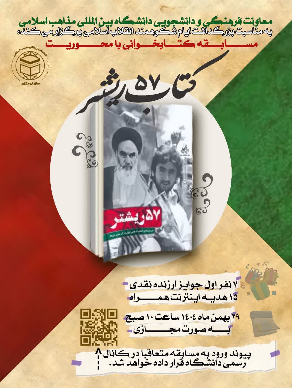 معاونت فرهنگی و دانشجویی به مناسبت بزرگداشت ایام شکوهمند انقلاب اسلامی برگزار می کند: مسابقه مجازی کتابخوانی از کتاب۵۷ ریشتر